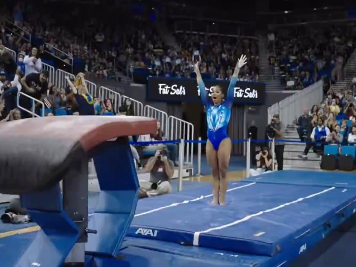 Olympic gymnast Jordan Chiles achieved a career milestone by scoring her first-ever “perfect 10” on the vault, leading UCLA to victory against Nebraska while competing in the Bruins’ home opener of the season as they faced the Cornhuskers at Pauley Pavilion.